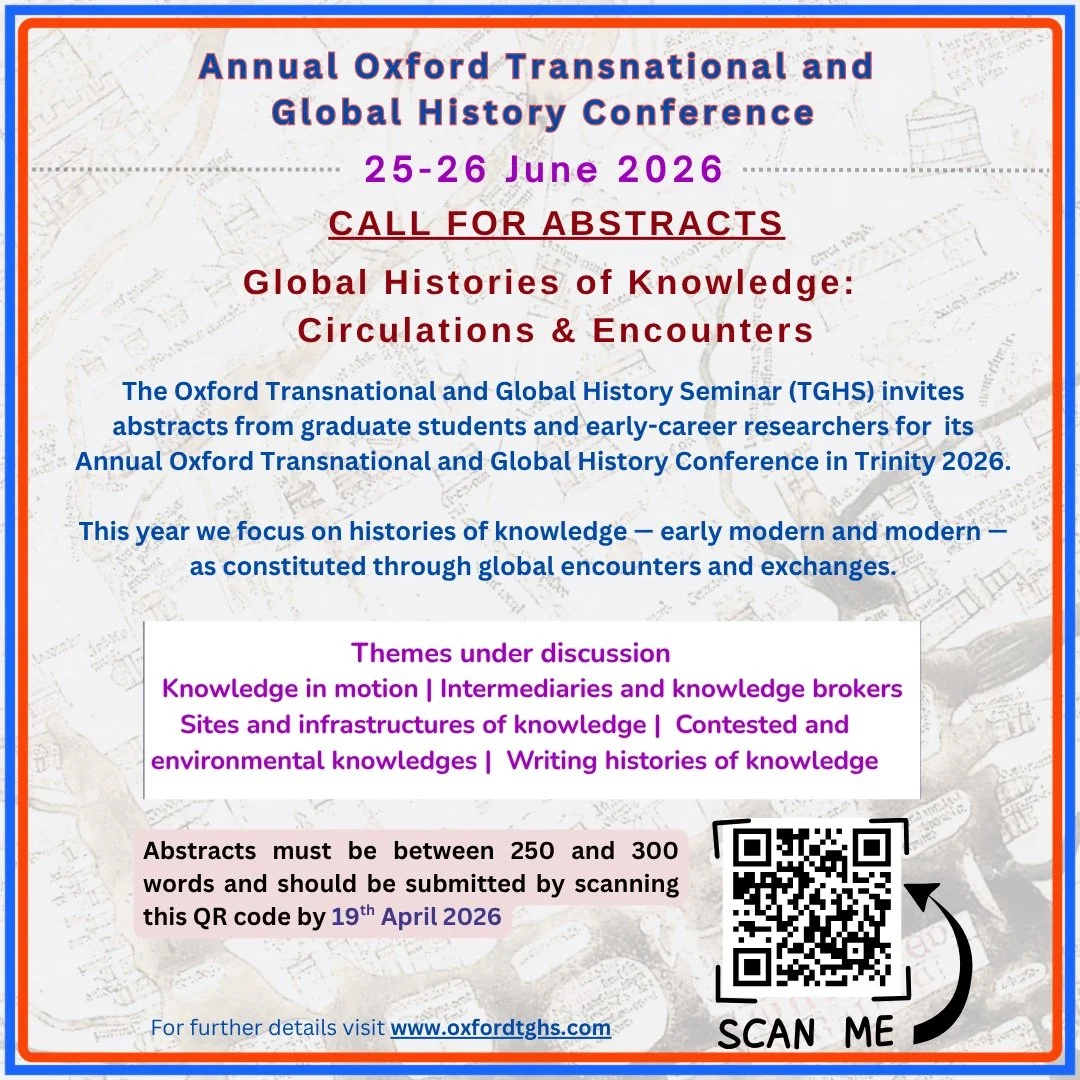 The Oxford Transnational and Global History Seminar (TGHS) invites abstracts for its Annual Conference from graduate students and early-career researchers.